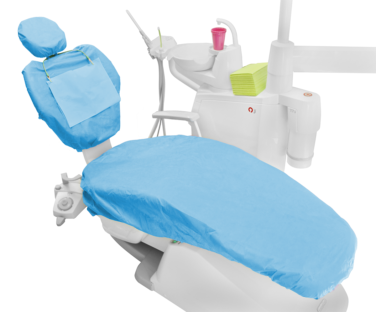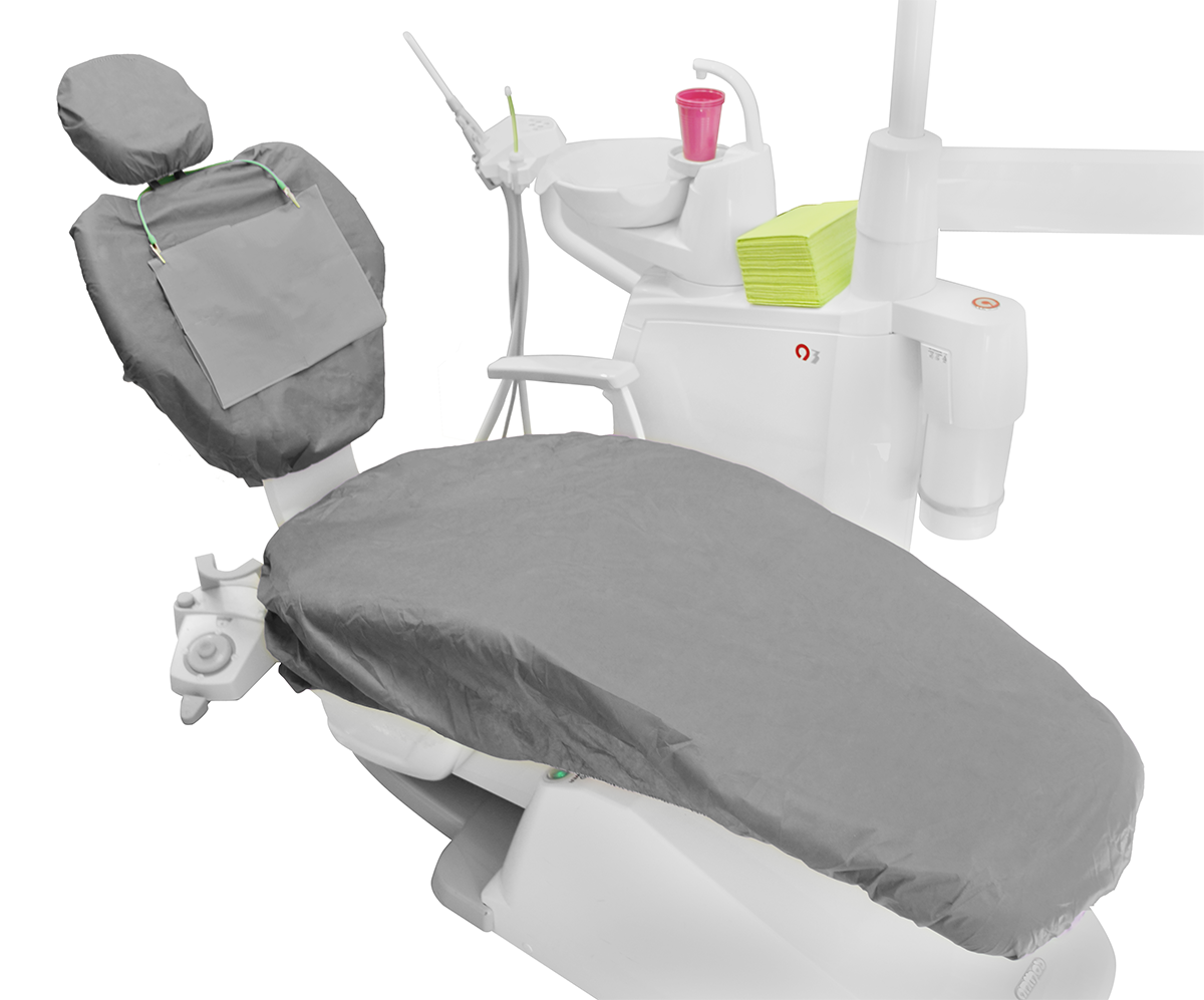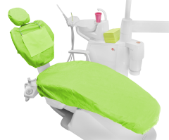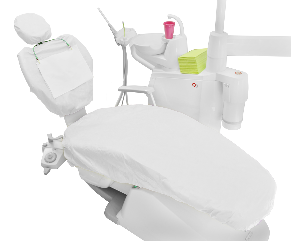 Pokrowiec składa się z trzech części: na siedzenie, oparcie i zagłówek. Posiada uniwersalny rozmiar pasujący na wszystkie fotele dentystyczne. Można go łatwo dopasować dzięki troczkom oraz gumkom wszytym w brzegi każdej części. Wykonany jest z miękkiej, przepuszczającej powietrze włókniny zapewniającej komfort pacjentom.