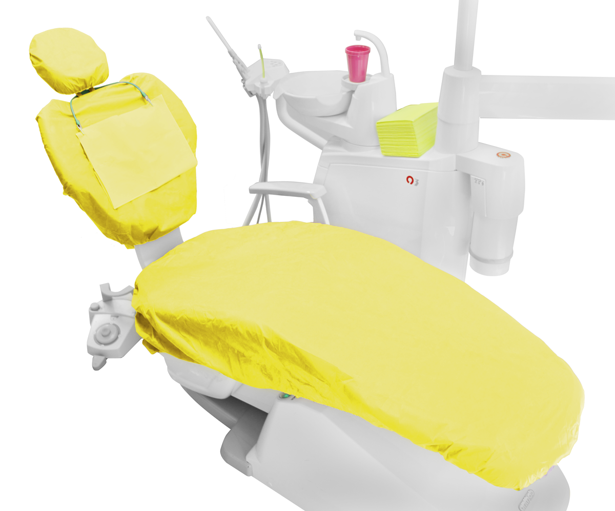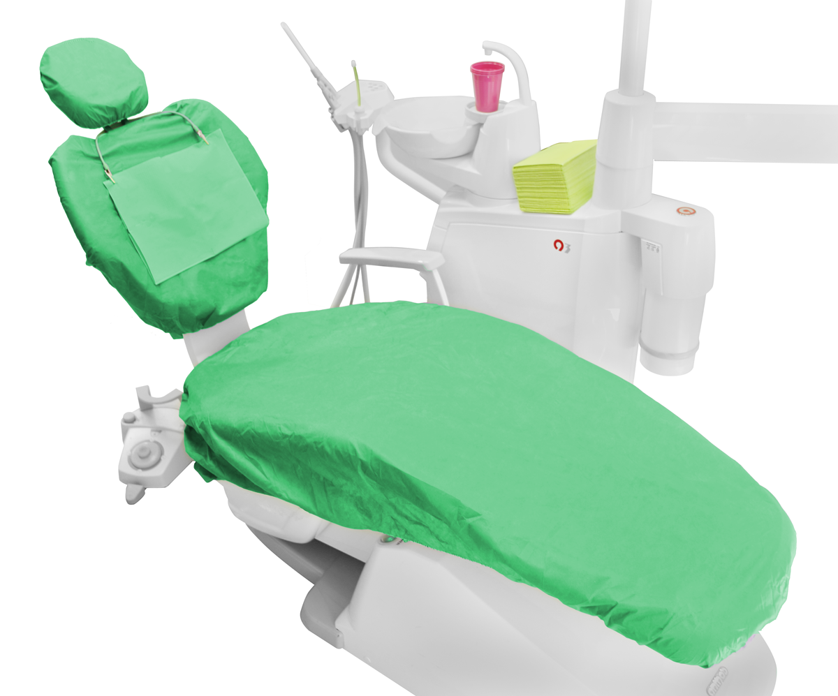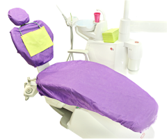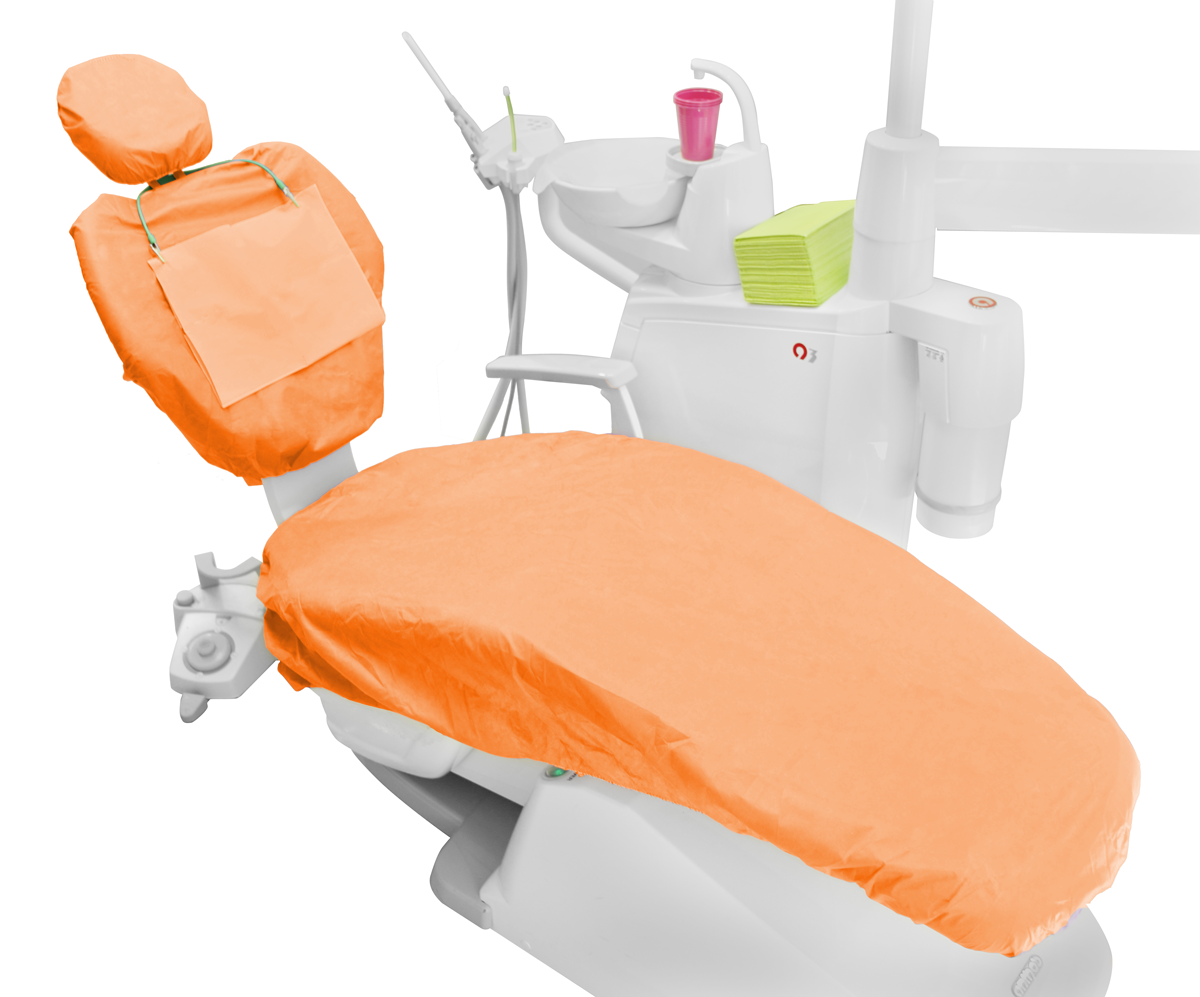 Pokrowiec składa się z trzech części: na siedzenie, oparcie i zagłówek. Posiada uniwersalny rozmiar pasujący na wszystkie fotele dentystyczne. Można go łatwo dopasować dzięki troczkom oraz gumkom wszytym w brzegi każdej części. Wykonany jest z miękkiej, przepuszczającej powietrze włókniny zapewniającej komfort pacjentom.