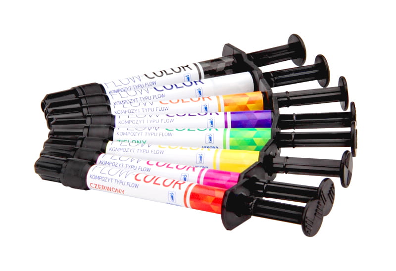 Flow-Color firmy Arkona to nowoczesny kompozyt światłoutwardzalny typu flow (płynny), stworzony głównie z myślą o najmłodszych pacjentach. Stosowany jest do ubytków klas: I, II, III, IV i V, lakowania kolorowego, wypełniania ubytków zębów mlecznych, blokowania podcieni, markowania ujść kanałów po leczeniu endodontycznym, lakowania z preparacją bruzd. Może być wykorzystywany również do bezpośredniego szynowania pourazowego zębów.
